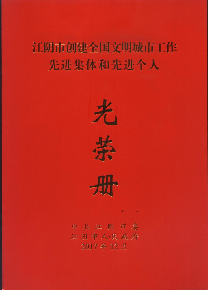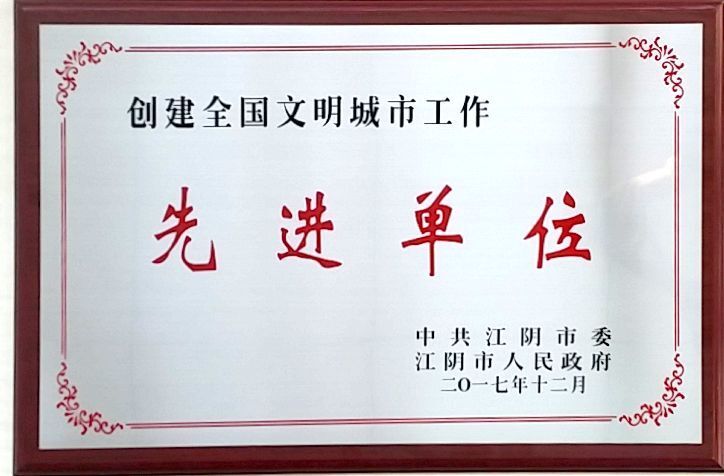 公司被評為17年江陰創(chuàng)建文明城市工作先進集體
