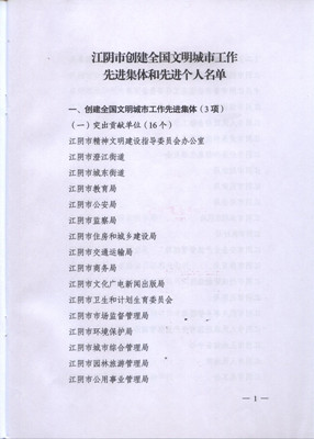 全國文明城市,是一個城市最有價值的品牌,是一座城市的最高榮譽,創(chuàng)建全國文明城市是優(yōu)化經(jīng)濟發(fā)展環(huán)境,營造健康、文明、向上的良好社會風尚的重要途徑,也是提高公民文明素質(zhì)、滿足人民群眾不斷增長的精神文化需要,作為江陰城市市政基礎(chǔ)設(shè)施建設(shè)的主力軍之一,公司高度重視文明城市創(chuàng)建工作,緊緊圍繞上級主管提出的創(chuàng)建文明城市的目標任務(wù)和工作要求,切實加強領(lǐng)導(dǎo),明確目標,落實措施,責任到位,扎扎實實開展文明創(chuàng)建活動,樹優(yōu)良作風、抓優(yōu)質(zhì)服務(wù)、創(chuàng)優(yōu)美環(huán)境、樹文明形象,取得了明顯成效。